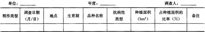3 品种抗性情况调查 分别在孕穗末期和黄熟期结合叶瘟、穗瘟普查分别进行1次。调查当年主栽品种。按品种的病情程度,选择有代表性的轻、中、重三类型田,总田块数不少于20块,采用平行跳跃式取样,每块田查50~100丛。按5.5进行品种抗性划分。结果记入表4-7。 表4-7 品种抗病性情况统计表