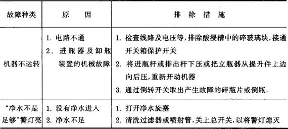 图6-3-6 空瓶灭菌机图例 以德国SEITZ公司产TAUCH-STELLA1-12 G瓶子灭菌机为例: 1.基本参数 (1)规格型号 SEITZ TAUCH-STELLA 1/12G (2)机号 1741/79 BV25423 (3)外形尺寸 长×宽×高 2340×2400×2445~2645mm 重量 2700kg (4)瓶盒数 264个(12×12) 每排瓶数 12个 机上瓶数 264个 链矩 110mm (5)喷水压力 1.5ATM 喷嘴数 24个 耗水量 1440L/h 电功率 4kW 2.功能及工作原理 (1)功能 该机根据浸浴原理进行瓶子灭菌,在消毒同时将瓶子进一步清洗。 (2)工作原理 瓶子被输送带送上进瓶台,由进瓶杆通过滑道将瓶子推进瓶盒,瓶盒轮通过酸浸槽体时浸在槽中,槽中的H2SO3液体进入瓶内,瓶轮离开槽后,瓶子倒出淋干H2SO3液体,然后用净水喷洗瓶子内外,并淋干。由排空杆将瓶子送到立瓶器,立瓶器在输送带上将瓶子立正放好,由输瓶带输出机外备用。 该机全自动控制,同时装有H2SO3循环过滤装置,可延长H2SO3溶液的使用时间。当该机停止运转时,电磁阀可自动关闭净水清洗器,SO2气体由排气装置排出室外,以保持室内没有污染。瓶子在离开酸浸槽淋干后,须经第二次过滤酸液的喷洗淋干,并插入吹管,用无菌空气吹干。 3.保养 (1)该机轴承采用密封的滚珠轴承或不用润滑的塑料滑动轴套。进瓶盒的传动链应使用适合链条润滑的润滑脂。 (2)塑料轴承套运转有噪音,可滴几滴润滑油解决。 (3)SO2溶液 3~5天后更换第一次注入的酸液,两周后更换第二次注入的酸液。由于循环过滤,以后可根据瓶子的污染程度和净水喷射水质情况4~6周更换酸液。每次更换酸液须清除槽中脏物和碎玻片,并用清水冲洗干净。 (4)循环过滤器 在过滤器进口前部管道中装有流量视测装置,在此观察循环过滤流量,如浮动的球体不被液流推上,说明流量小了,证明过滤器污染,应更换。如始终没有流量显示,应检查泵是否上了水,可将酸浸槽排空并检查进管是否工作,注意泵内不必排空。 (5)喷射装置 每天上班开机及中途通过视孔各检查一次所有喷嘴及电磁阀是否工作。 (6)该机操作温度不得在0℃以下,否则须将酸浸槽全部排空。在必要的情况下松开螺栓和连接软管将所有过滤器管道及泵全部排空。 4.故障及排除 表6-3-2 故障、原因及排除措施