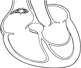 1.正常窦性心律(normal sinus rhythm) 窦房结(图28)内含有深核染色的P细胞,是心脏的最高级起搏组织。窦房结发出规则的窦性激动60~100次/分,并将激动传入心房。窦房结内含有丰富的交感和传交感神经纤维,存在含量极高的儿茶酚胺和高度的抗乙酰胆碱酶活性。窦房结动脉供血,该动脉分支65%来自右冠状动脉,35%来自左冠状动脉的回旋支。
