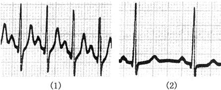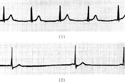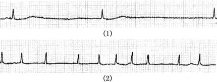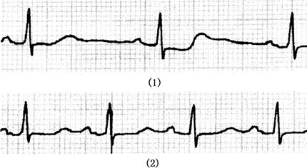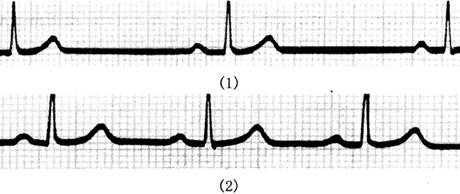 图34 窦性心动过缓 (1)轻度窦缓;(2)明显窦缓