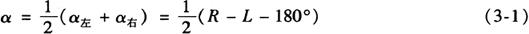 如图3-15所示,当在盘左位置且视线水平时,竖盘的读数为90°[图3-15(a)],如照准高处一点A[图3-15(b)],则视线向上倾斜,得读数L。按前述的规定,竖直角应为“+”值,所以,盘左时的竖直角应为: