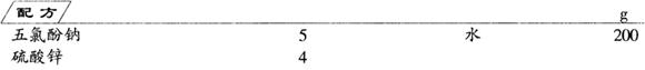 制法 将五氯酚钠溶解于100g水中,搅拌混合,使其完全溶解;将硫酸锌溶解于余下的100g水中,搅拌使其溶解。用时将竹制品浸入五氯酚钠溶液中30~40min后晾干,再浸入硫酸锌溶液中,30~40min后捞出,用清水漂洗干净,即得防霉防蛀竹制品。 |