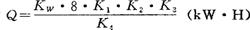 式中 Q-台班电力消(kW·H); KW-电动机额定容量(kW); 8-台班工作制的小时数; K1-电动机的时间利用系数; K2-电动机的能力利用系数; K3-低压线路电力损耗系数; K4-电动机的有效利用系数。