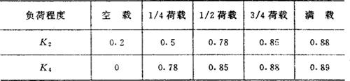 式中 Q1-平均实际起重量(包括起重装置重量(kg); V-起重速度(m/s); K5-起重装置的有效利用系数。 为简化计算,将一般电动机不同负荷的功率(K2)与效率(K1)的变化规律,列表3-10供参考使用。 表3-10 一般电动机不同负荷的功率与效率变化规律