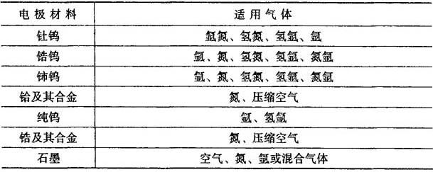(3)电极 电极材料的选择与等离子弧焊接相同,但是,空气等离子切割时,空气对电极氧化作用大,因此不能选用钨作电极,只能选用铪或锆及其合金作电极,电极形状为镶嵌式,表5-9为电极材料与适用气体的选配.