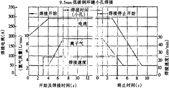 图6-14 厚板环缝小孔型焊接电流及离子气流量斜率控制曲线 |