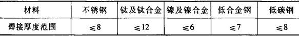 图6-8 小孔等离子弧焊焊缝成形过程 1-小孔 2-熔池 3-焊缝 4-焊缝正面 5-焊缝反面 表6-1 小孔等离子弧焊一次穿透的厚度