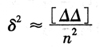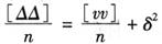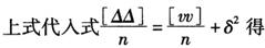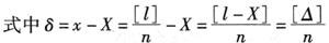 上式推导如下: △i=li-X vi=li-x 以上两个等式相减得: △i-vi=x-X 令δ=x-X,代入上式并移项后得 △i=vi+δ 以上n个等式两端分别自乘得 △i△i=vivi+2viδ+δ2 上式有n个取和得 [△△]=[vv]+2δ[v]+nδ2 因为 [v]=0 所以 [△△]=[vv]+nδ2 等式两端分别除以n得