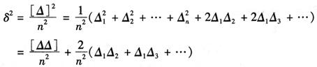 由于△1,△2,…,△n为偶然误差,故非自乘的两个偶然误差之积△1△2,△1△3…仍然具有偶然误差性质,根据偶然误差的第四个特性,当n→∞时,上式等号右端的第二项趋于零。因此得