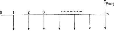 假如为在n年末能筹集一笔资金(F),在年利率为i时,资金存储图如图2.2.5-2。