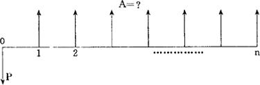 当期初投资(P),年收益率为i时,在n年内每年可回收资金,资金回收图如图2.2.5-3。