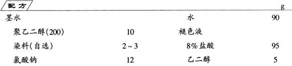 (1)墨水制备 把染料溶于聚乙二醇中,把氯酸钠溶于水中,然后把两种溶液混合,即得签字笔墨水。