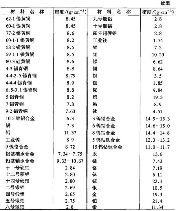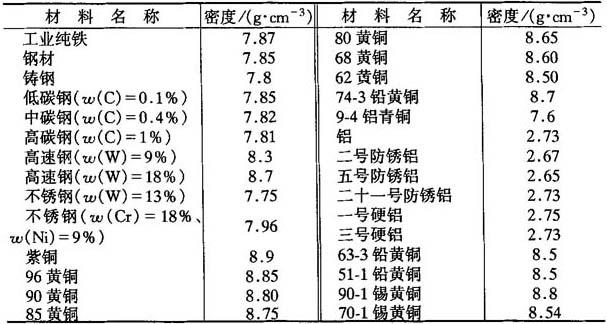 表6-1 常用材料的密度