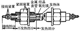 | 释义 | 管状电热元件 管状电热元件又称电热管,是由铁铬铝或镍铬铝电热材料作为发热体,外面包有金属套管,中间填以电熔结晶氧化镁填料组成,如图10-2所示。管状电热元件的选用如表10-2所示。