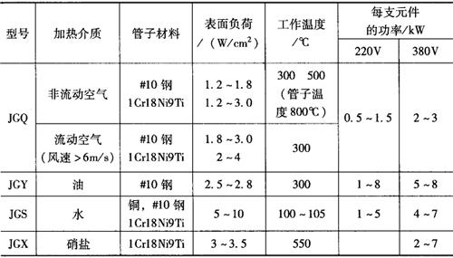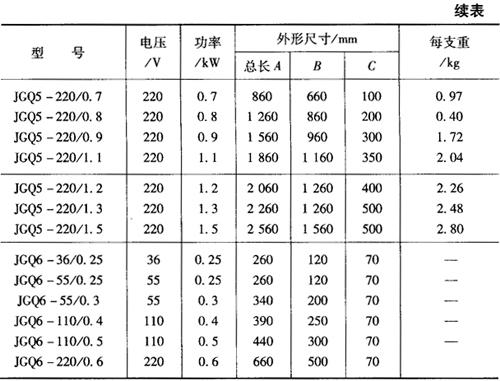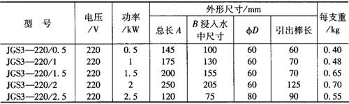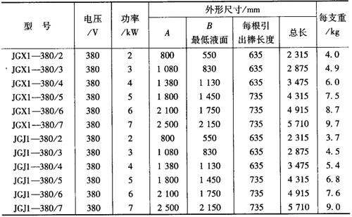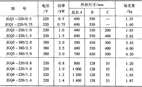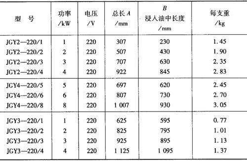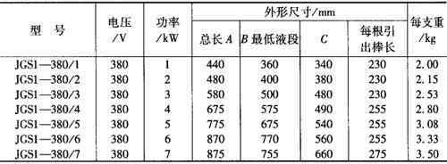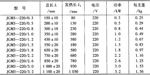 表10-16 JGX1、JGJ1型管状电热元件的技术数据