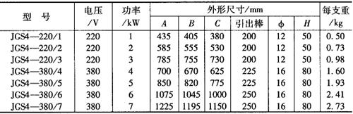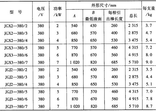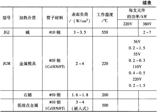 表10-17 JGX2、JGJ2型管状电热元件的技术数据