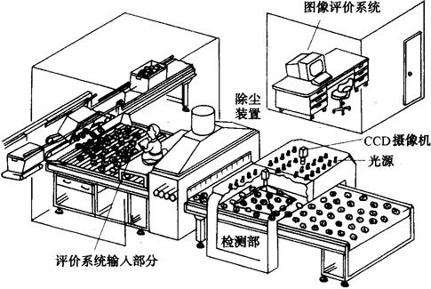 | 释义 | 管理计算机化 在发达国家,分级作业多为集体作业。即农民将各自生产的果蔬产品集中到所属农协果蔬分级场地或果蔬采后处理工作站,经统一分级后推向市场。由于农户的管理水平不同,栽培环境各异,往往导致果蔬质量不同。以往是人工通过目测进行评价,经常出现误差与矛盾。现在,应用计算机图像处理技术,进行随机取样,客观地评价各自果蔬的质量,避免了矛盾的发生。 图6-3所示为一柑橘品质自动评价装置。通过这个装置主要实现了形状、颜色的定量化,客观地进行评价;在以往的评价方法中,样品所占比例为10%,采用该装置后可提高到30%~40%,使评价结果更具说服力。对柑橘的评价有尺寸和颜色、伤痕,也就是尺寸和等级,为了实现高速处理必须同时进行尺寸和品质等级评价。为此,实时颜色演算装置成为该系统最大难点。颜色的判断只要取得颜色比就可进行定量化,但处理装置成本高,难以实用。所以,在该系统内编制了超高速图像处理专用程序;由两台摄像机摄取的图像通过一台图像处理装置同时进行形状、尺寸、颜色的测量,降低了成本;增加专用的CCD摄像机实时处理插板,实施三通道处理,实现了在线高速检测。在检测时,为保证精度,取摄影范围50cm×50cm,共两处。为了消除外部光的影响,安装了遮光罩,保证内部一定的光强度。