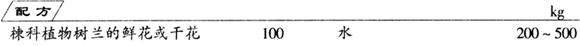 先将鲜花或干花用水浸泡,在蒸馏装置中加热蒸馏,收集水蒸气馏出液,分离出香油。鲜花得油率0.3%,干花得油率0.7%。