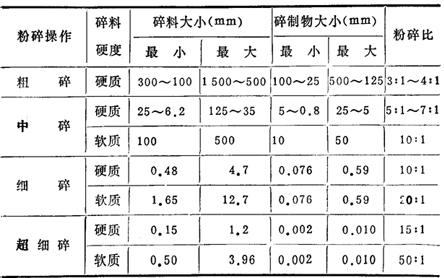 由表16-40可知,粉碎设备的选择,应从粉碎操作、粉制物的大小来决定。
