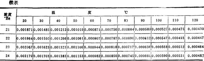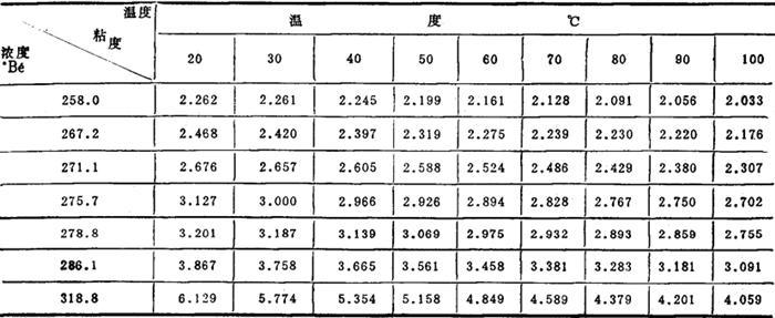 表2-1-31 苦卤粘度