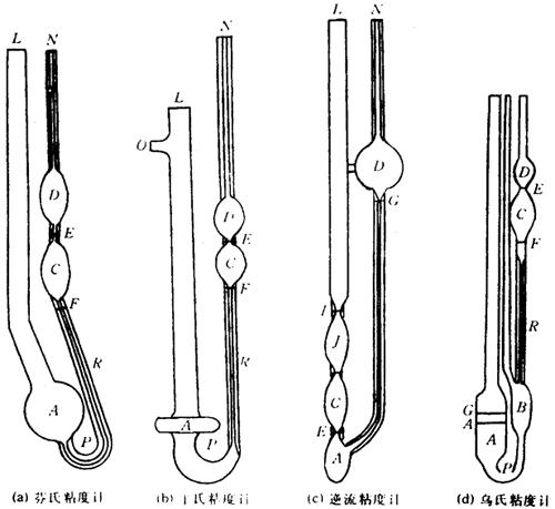 | 释义 | 粘度计的主要技术特性 测量流体粘度的仪器称为粘度计。粘度计的主要类型有:毛细管粘度计、落球粘度计、旋转粘度计、平板粘度计、振动粘度计等。 在粘度计量基准和标准中使用的粘度计是毛细管粘度计。它是基于泊肃叶定律,测量一定压力差下流过毛细管的液体的流速来确定液体粘度的仪器。常用的毛细管粘度计有乌氏粘度计、平氏粘度计,芬氏粘度计和逆流粘度计等。图12.4-1是毛细管粘度计的示意图。