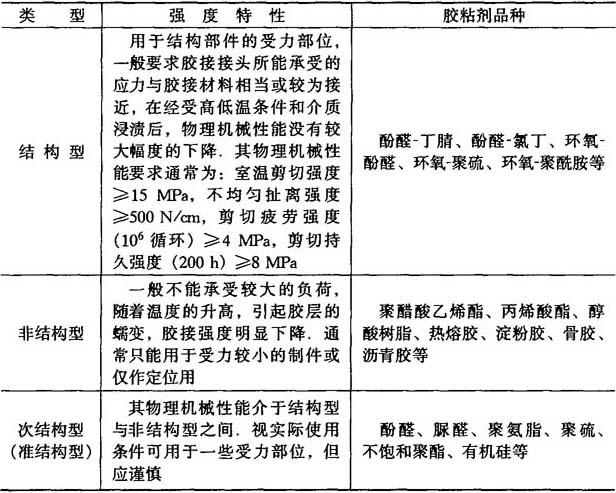 表8-2 粘接剂按强度特性分类表