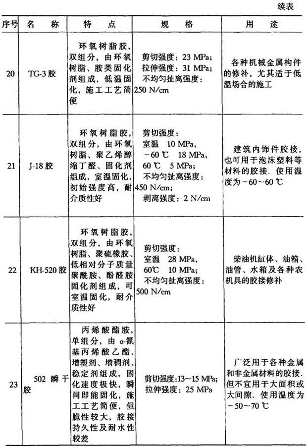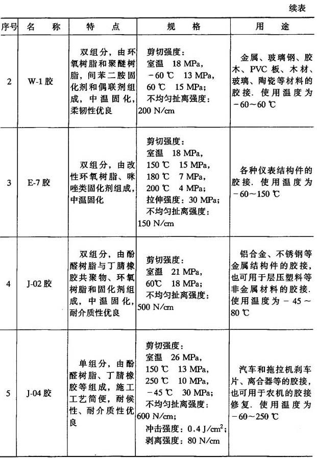 (2)通用型胶粘剂 如表8-6所示.