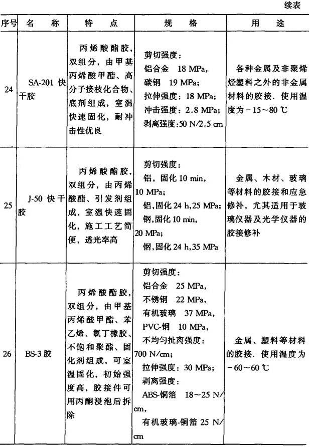 (3)结构型胶粘剂 如表8-7所示.
