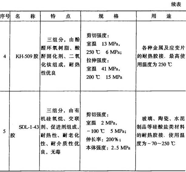 表8-8 耐高温胶粘剂