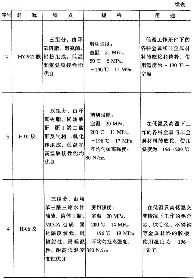 (5)耐低温胶粘剂 如表8-9所示.