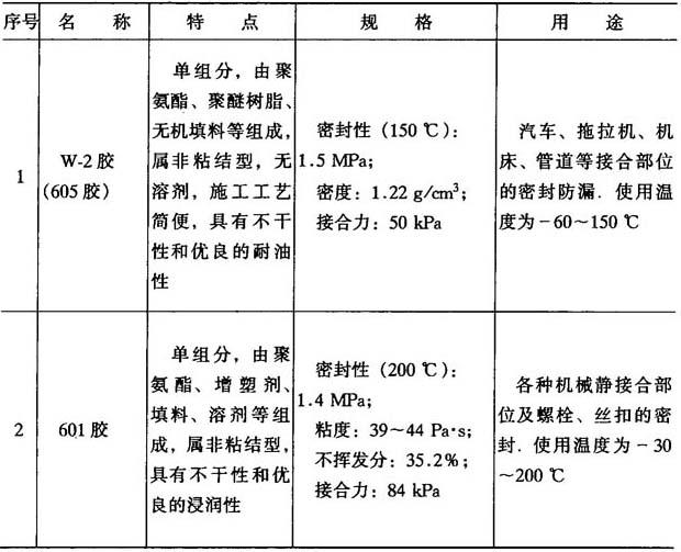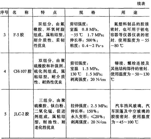 (6)密封型胶粘剂 如表8-10所示.