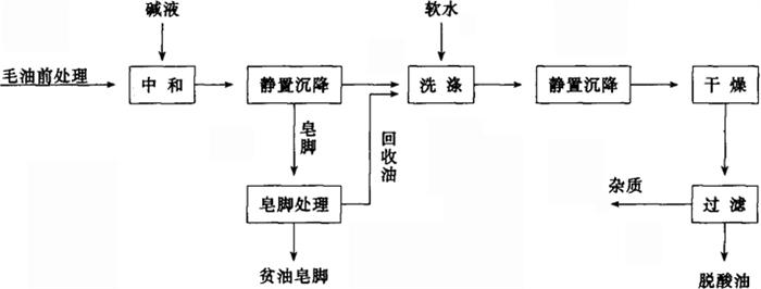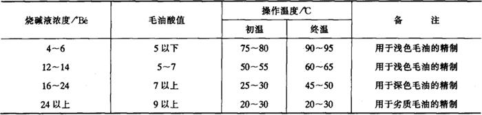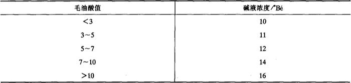 图1-3-25 间歇式碱炼工艺流程 表1-3-8 不同浓度碱液的操作温度