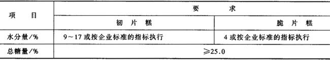 2.理化要求 片糕的理化要求见表4-1-40。 表4-1-40 片糕理化要求