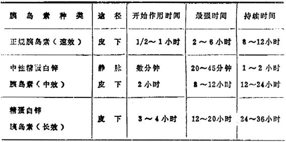 五、糖尿病酸中毒昏迷的处理: (一)应用正规胰岛素,初次剂量为1单位/公斤/日,皮下注射,或取1/3~1/2静脉注射,2~3小时后,根据病情及血糖再皮下注射1/2量,血糖不降者可给加倍量,然后按尿糖估计胰岛素用量。 (二)纠正脱水酸中毒,可用等渗含钠溶液(单纯生理盐水,或用1.4~5%碳酸氢钠,使二氧化碳结合力回升到12~15毫当量/升以上)。利尿后要及时补钾,可用10%氯化钾8毫升加入250毫升葡萄糖或生理盐水内点滴,清醒后口服氯化钾3~5克/日。 (三)注意控制感染,可应用抗菌素等。 (四)密切注意胰岛素反应。 |