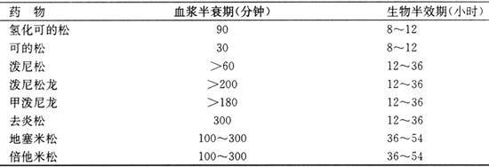 | 释义 | 糖皮质激素类药物 【释文】: 目前糖皮质激素仍然是治疗自身免疫性疾病的重要药物,合理应用本类药物十分重要。 1.常用药物 糖皮质激素类药物的品种繁多,由于剂型不同,其半衰期和半效期也不一样(见表21-2)。正确选择药物对取得疗效很重要。 表21-2 常用糖皮质激素类药物的半衰期和半效期
