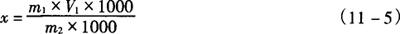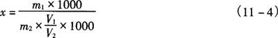 式中 x——样品中糖精钠含量,g/kg或g/L m1——样品测定液中糖精钠的含量,g/L V1——样品定容体积 m2——样品体积(mL)或质量,g |