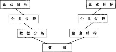 | 释义 | 系统规划的主要方法 用于管理信息系统规划的方法很多,主要是关键成功因素法(Critical Success Factors,CSF)、战略目标集转化法(Strategy SetTransformation,SST)和企业系统规划法(Business System Planning,BSP)。其他还有企业信息分析与集成技术(BIAIT)、产出/方法分析(E/MA)、投资回收法(ROI)、征费法(Chargeout)、零线预算法、阶石法等。用得最多的是前面三种,后面的几种用于特殊情况,或者作整体规划的一部分使用。 关键成功因素法(CSF),1970年哈佛大学教授William Zani在MIS模型中用了关键成功变量,这些变量是确定MIS成败的因素。过了10年,MIT教授John Rockart把CSF提高成为MIS的战略。 战略目标集转化法(SST),William King于1978年提出,它把整个战略目标看成是一个“信息集合”,由使命、目标、战略和其他战略变量(如管理的复杂性、改革习惯以及重要的环境约束)等组成。MIS的战略规划过程是把组织的战略目标转变为MIS战略目标的过程。 这个方法的第一步是识别组织的战略集,先考查一下该组织是否有写成文的战略式长期计划,如果没有,就要去构造这种战略集合。可以采用以下步骤:①描绘出组织各类人员结构,如卖主、经理、雇员、供应商、顾客、贷款人、政府代理人、地区社团及竞争者等。②识别每类人员的目标。③对于每类人员识别其使命及战略。当组织战略初步识别后,应立即送交总经理审阅和修改。 第二步是将组织战略集转化成MIS战略,MIS战略应包括系统目标、约束以及设计原则等。这个转化的过程包括对应组织战略集的每个元素识别对应的MIS战略约束,然后提出整个MIS的结构。最后,选出一个方案送总经理。 企业系统计划法(BSP),IBM公司70年代初将其作为用于内部系统开发的一种方法。它主要是基于用信息支持企业运行的思想。在总的思路上它和前述的方法有许多类似之处,它也是先自上而下识别系统目标,识别企业过程,识别数据,然后再自下而上设计系统,以支持目标,见图7.2-1。