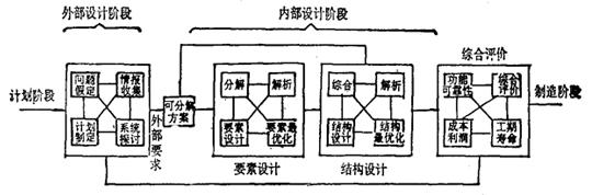 图3-2 定型设计程序 图3-2中的所谓内部设计和外部设计,从表3-1便一目了然。 系统的内部设计和外部设计