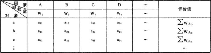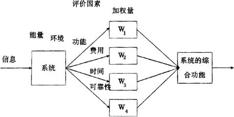 图2.1.7-1 系统评价 2.交叉增援矩阵法 交叉增援矩阵法,是在评价要素和评价对象间有相互干涉时,对其评价结果进行修正的一种矩阵方法。采用这种方法对评价结果进行修正时,可将相关矩阵法所得的评价值Wi乘100加以标准化,其结果WiN可用下式表示: