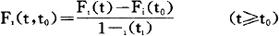 图2.1.7-3 Dj在成功瞬时点上的概率分布 在预测开发项目Dj的成功时期时,假定初期分布函数为Fj(t),如果从t=0到t=t0之间Dj没有成功,并且与Dj相关的其他研制项目也没有成功,而t≥t0的分布函数Fj(t,t0)如果可用下式给出,即