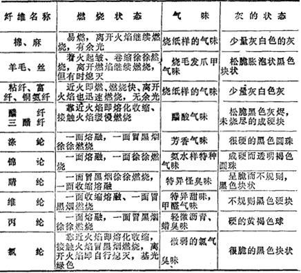 表18-9 纤维燃烧鉴别法
