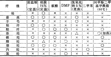 注:〇-溶解;△-微溶;×-不溶。