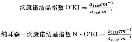 | 释义 | 纤维素的结晶结构与无定形结构 纤维素纤维中纤维素的聚集态是很复杂的,现在较普遍承认的是两相结构理论,认为纤维素是由结晶区与无定形区交错联接而成的。在结晶区内纤维素链分子的排列具有完全的规则性;而在无定形区,纤维素链分子排列的规则性较差,排列较不整齐,结合得较为松弛。 结晶区占纤维素整体的百分率称为纤维素的结晶度。纤维素的结晶度在一定程度上反映了纤维素的物理和化学性质。一般来说,结晶度增加,则纤维的抗张强度、杨氏模数、硬度、比重及尺寸稳定性等均随之增加;而伸长率、吸湿性、染料吸着度、润胀度、柔软性及化学反应性等均减小。因此,测定纤维素的结晶度对了解纤维素纤维的性质有很大的指导意义。 纤维素结晶度的测定,有化学或物理—化学法和物理法两大类。化学法或物理—化学法有水解法、重水交换法、甲酰化法、吸湿法、吸碘法和吸溴法等。物理法有X-射线衍射法、红外光谱法和密度法等。最常用的方法是X-射线衍射法和红外光谱法。红外线指数常用纳耳森(Nelson)和沃康诺(O’connor)法,通过测定样品的红外线光谱,然后计算两个波数的峰强度比值而求得: