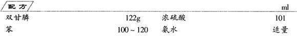 制法 将122g(0.46mol)双甘膦和100~120ml苯放置于500ml带搅拌器、温度计、分水器及滴液漏斗的四颈烧瓶中,加热搅拌到回流。当温度升到80~82℃时,使其产物再与浓硫酸反应,用浓硫酸101ml从滴液漏斗中加入。放掉分水器中的苯和水,缓慢加温至100℃使苯脱出,再升温至115℃,搅拌3h。最后用氨水调节pH值6~8,即得产品。 |