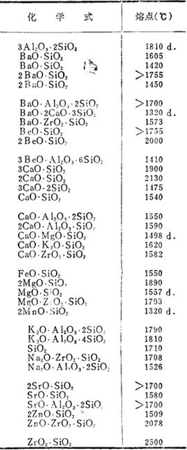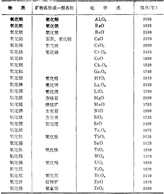 纯耐火物质的熔点