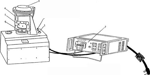 图9-10-9 BPW-2型薄片耐破度仪外形图 1-调压阀 2-注油口 3-膜片气缸 4-防护罩 5-上夹环 6-下夹环 7-操作面板 4.生产厂家 四川省长江造纸仪器厂。 |