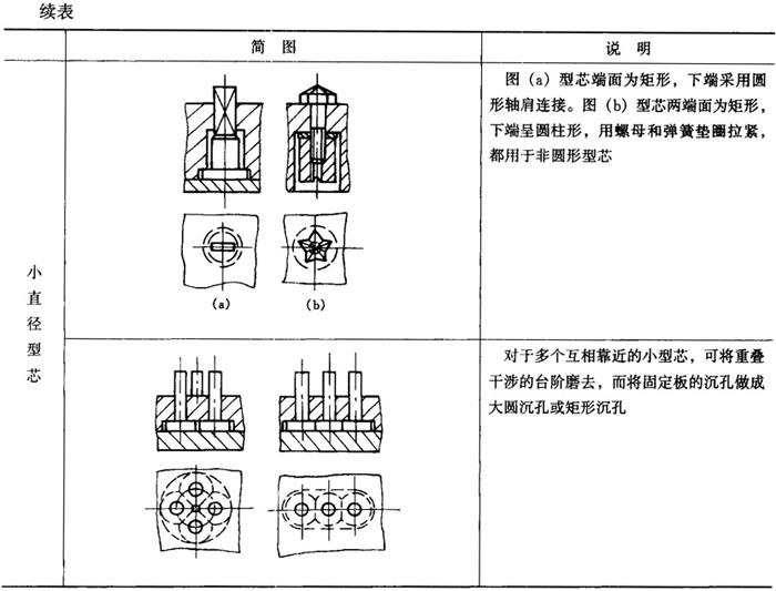 常见组合型芯的结构见表4-14。