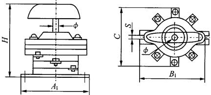 图1-18 HZ12-□/02外形及安装尺寸 注:HZ12型组合开关共有16种组合型式,各种组合型式的外形及安装尺寸各有差异,图1-18为具有红钮黄盘急停标志的外形。其他型式外形及安装尺寸可向制造厂索取。 |