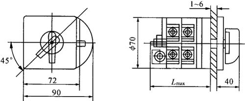 (3)HZ12型组合开关外形及安装尺寸见图1-18。