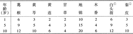【歌诀】 白头翁汤柏连皮,诸药合用治赤痢。 黄芩汤中枣芍草,治痢和中止痛好。 〔按语〕本方为原方加地、香组成。表中前四味药为白头翁汤,白头翁为主药;芩、芍、草、枣为黄芩汤,黄芩为主药。对表证已解、下痢脓血、赤多白少的患儿可选用本方。方中白头翁清热解毒,凉血治痢,它对志贺菌属中的志贺菌作用较强,对鲍氏、福氏、宋内菌依次减弱或不抑菌;秦皮苦寒而涩,能清湿热而止后重;黄柏泻下焦湿热,其抗痢疾杆菌的有效成分是小檗碱;芍药疏肝止痛;草、枣和中益脾。芩、连、地、香作用同处方一。我们曾用白头翁汤治小儿菌痢,其治愈率为82.3%。 (二)疫毒痢 1.闭证型 〔证候〕多数在未见下痢时,突起高热、烦躁、惊厥、神昏;部分下痢者大便腥臭伴脓血,尿短赤。舌质绛,苔黄腻。脉滑数。指纹紫滞。 〔治法〕清热解毒,开窍熄风。 〔方药〕清营汤(见乙脑节)加钩藤、菖蒲、紫雪丹(其用量及用法见惊厥节)。 〔按语〕清营汤清热解毒、凉血清心;其方解见第四章乙脑节,该方中银花、连翘、黄连对志贺菌属有抗菌作用。加用钩、菖及紫雪丹清热、止痉、开窍。若有腹胀可加枳壳、大黄。大便见脓血者加用白头翁、地锦。 2.脱证型 其辨证论治见第十一章小儿感染性休克节。 (三)脾虚久痢 〔证候〕下痢日久,时作时止,面黄肌瘦,纳差,乏力,大便中多夹黏液而少脓血,或有脱肛。舌质淡,舌体胖,苔白或腻。脉濡。指纹淡。 〔治法〕健脾利湿。 〔方药〕参苓白术散(见第七章腹泻节)加地锦、乌梅。 〔按语〕下痢日久,气血两虚,本型患儿脾虚之证明显,故选参苓白术散补气健脾,调中止泻,健脾和胃。加用辛平的地锦及酸平的乌梅,不伤脾胃,而两者抗志贺菌属的作用较强,故对久痢脾虚的患儿尤宜。对有脱肛者可用补中益气汤加地锦。 (四)虚寒痢 〔证候〕下痢累月或积年,大便常见白冻黏液,食少体瘦。神差怕冷,面色 〔治法〕温补脾肾,涩肠固脱。 〔方药〕附子理中汤合真人养脏汤加味。